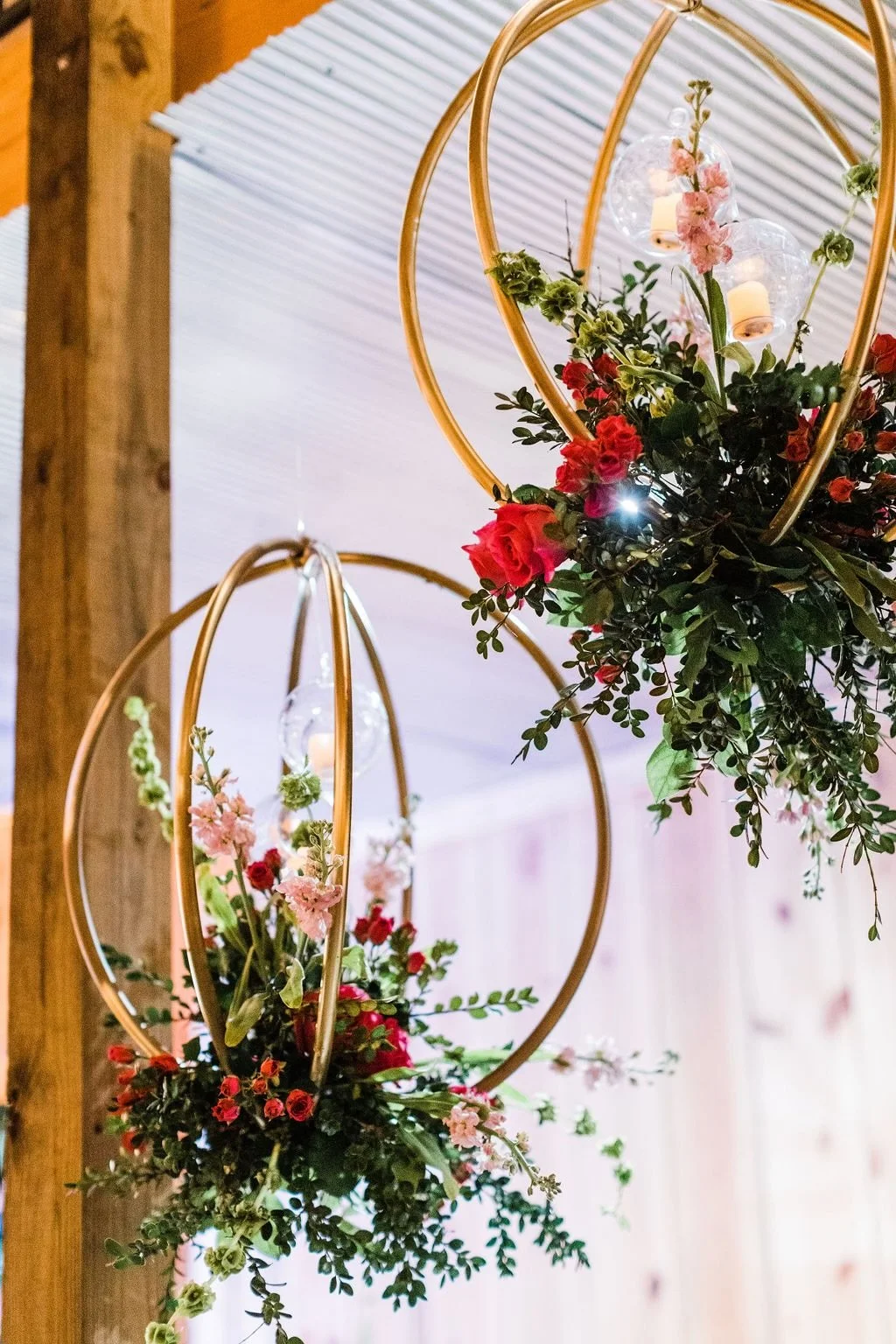 Emma Kate wanted bold colors and we showcased pinks, blues, and whites to capture the color scheme she wanted. Anemones, blue hydrangeas, queenberry roses, and white oharas helped us achieve this look along with tons of greenery and other textures.